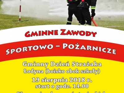 Natomiast 19 sierpnia 2018 r. (niedziela) o godzinie 14:00 zapraszamy do Łodyny, gdzie na boisku obok szkoły odbędą się gminne zawody sportowo-pożarnicze.